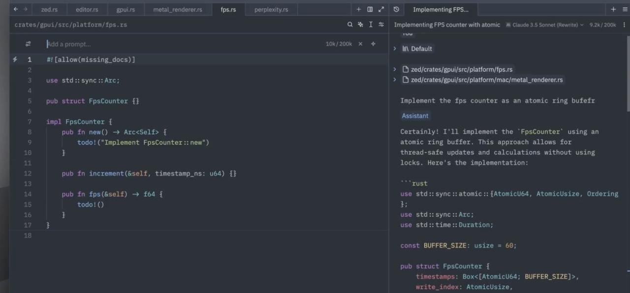 Zed — легковесный редактор, похожий на Sublime Text и VS Code (на начальном этапе), но с тесной интеграцией с LLM. Он предлагает два режима взаимодействия: чат с контекстом и inline-правки. Сначала может быть неудобно управлять контекстом самостоятельно, но со временем вы поймете, насколько это гибко и удобно.